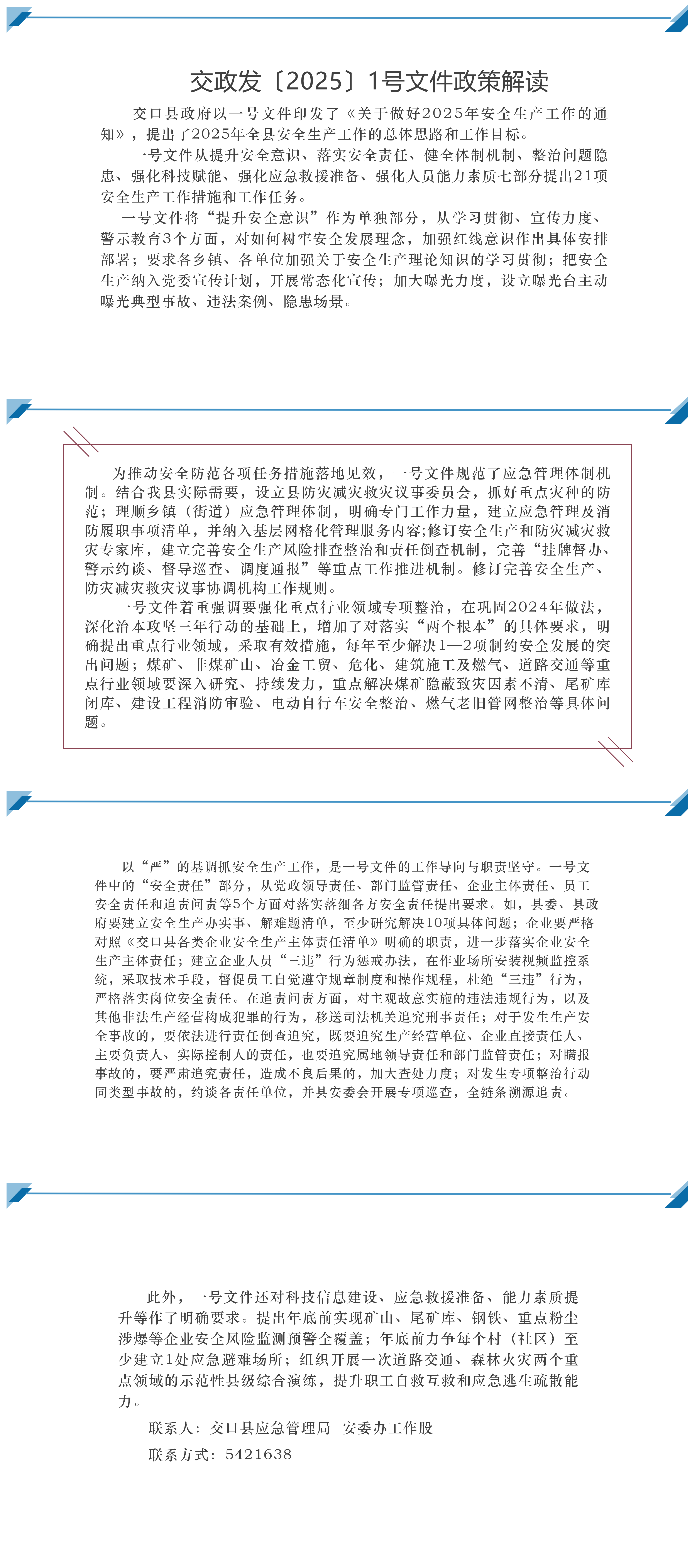 政策解读:交政发〔2025〕1号 交口县人民政府 关于做好2025年安全生产工作的通知