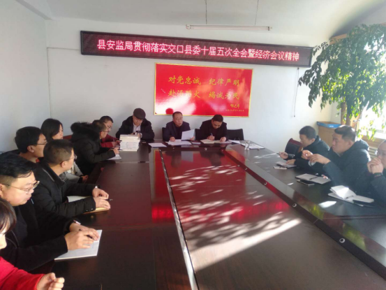 为进一步贯彻落实县委县政府交口县委十届五次全会精神暨经济会议精神,使局工作人员了解我县的全年工作情况,2019年1月21日安监局长冯鑫组织我局工作人员学习相关会议精神。