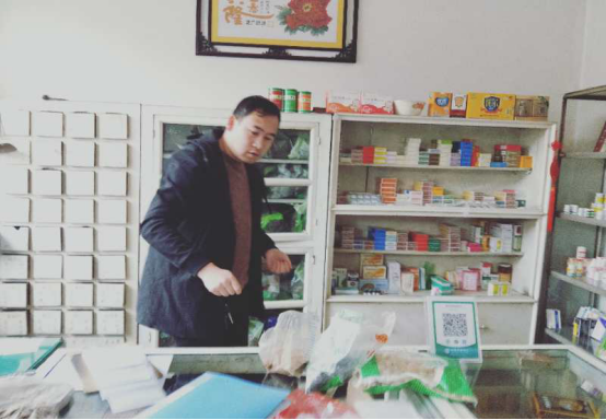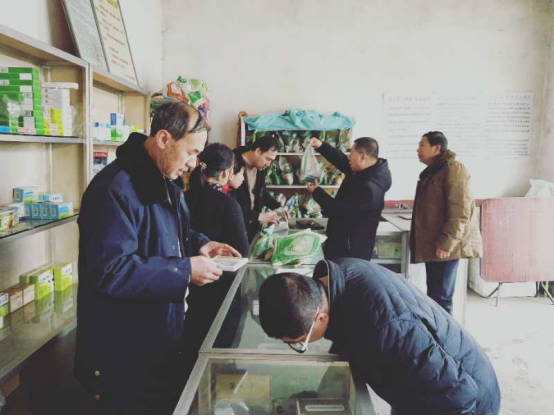 图为我局药品监管股股长马明生、双池所副所长刘迎东、双池所工作人员刘俊财在对双池镇药品经营单位进行检查。