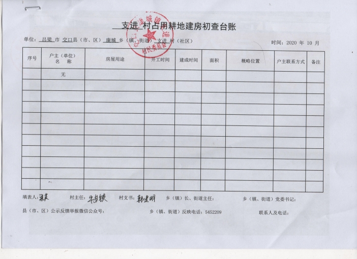 康城镇12村占用耕地建房初查台账公示
