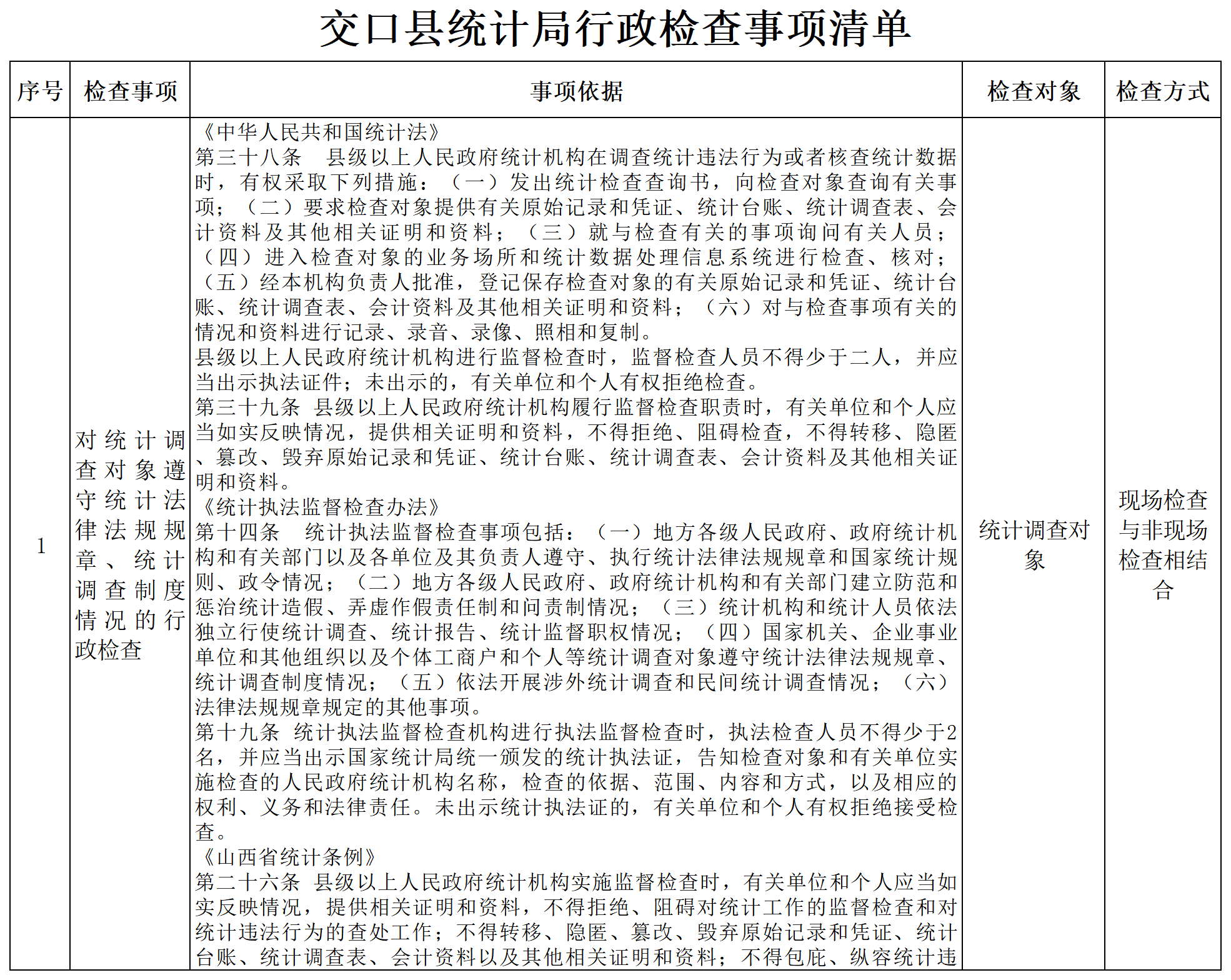 交口县统计局行政检查事项清单
