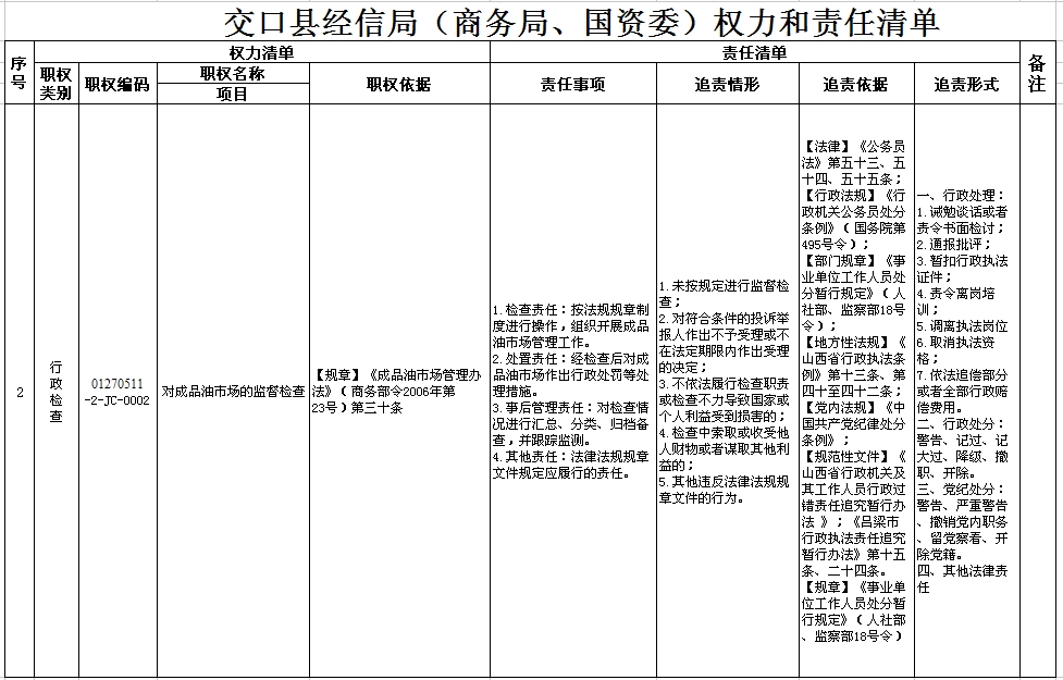 [行政检查] (01270511-2-JC-0002)对成品油市场的监督检查