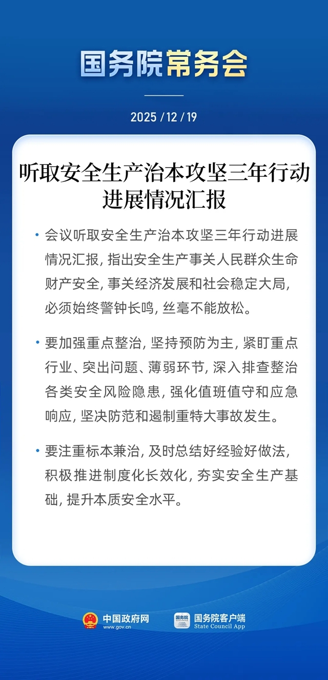 国务院常务会听取安全生产治本攻坚三年行动进展情况汇报