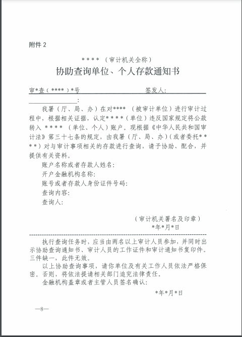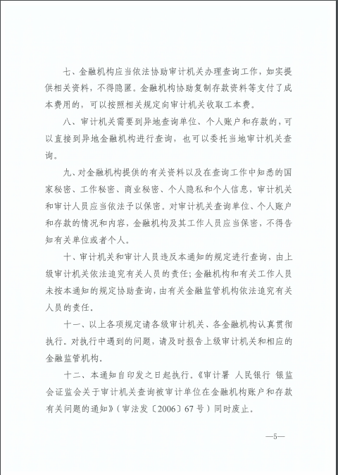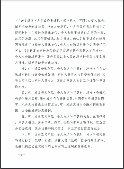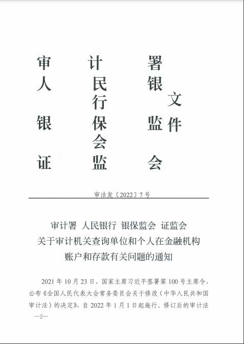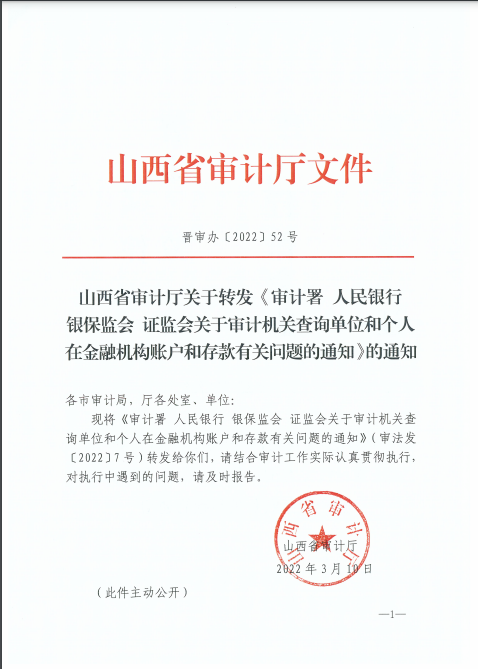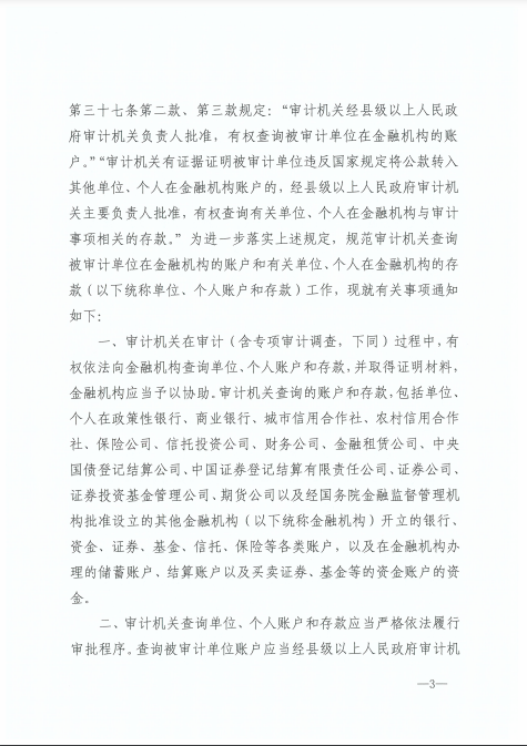 转发:关于《审计署 人民银行 银保监会 证监会关于审计机关查询单位和个人在金融机构账户和存款有关问题》的通知